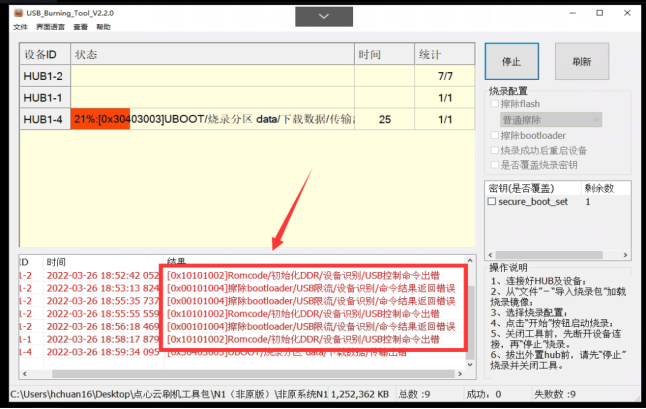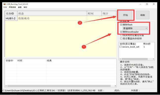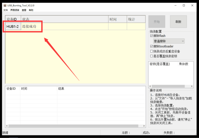 注意:观察电脑上的USB Burning Tool,认出一个HUB才对,没成功就多试几次。