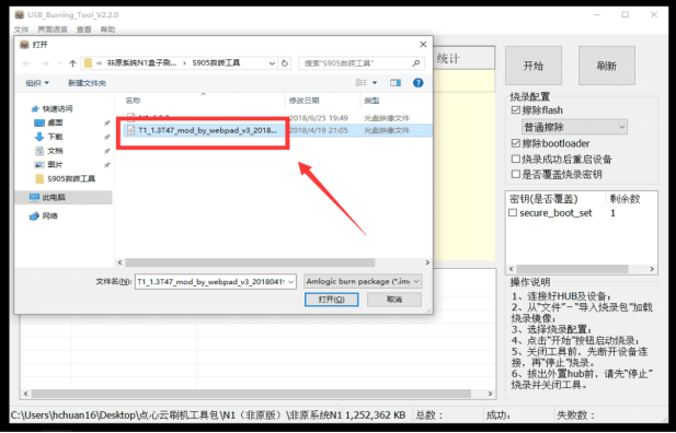 ① USB Burning Tool上点击文件,选择导入烧录包。