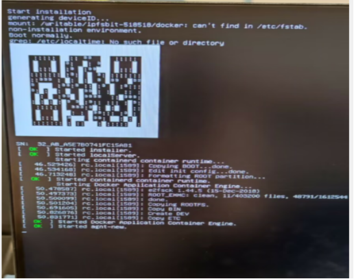 ⑦跑码结束后等待设备关机之后,拔掉电源,然后插上后可以有正常的二维码