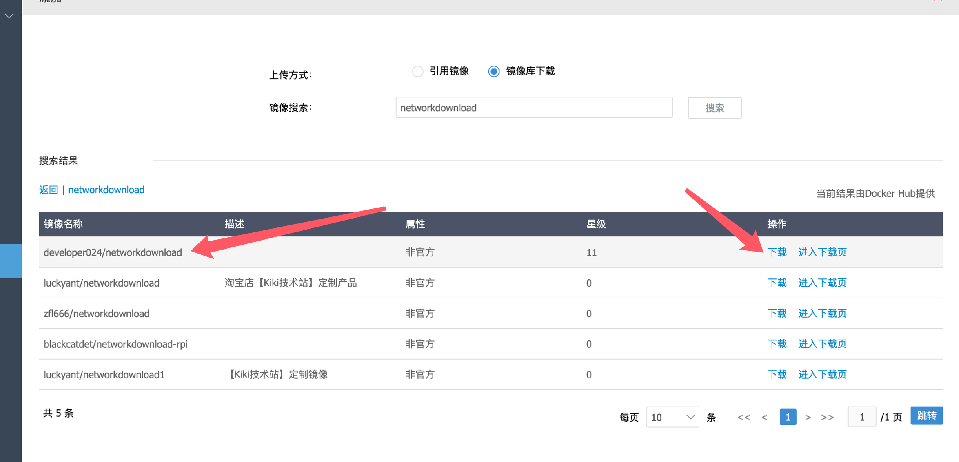 镜像库中搜索 networkdownload 选择 developer024/networkdownload 下载latest版本、